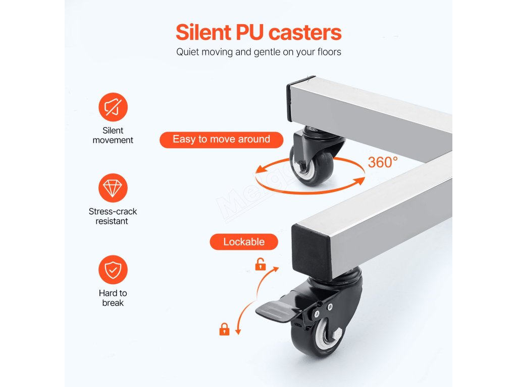 Náš zdravotnický podnos na kolečkách je vybaven čtyřmi prvotřídními otočnými kolečky z PU a nabízí plynulý a nehlučný pohyb. Dvě z koleček jsou vybavena brzdami, které umožňují bezpečné upevnění v jakékoli požadované poloze.