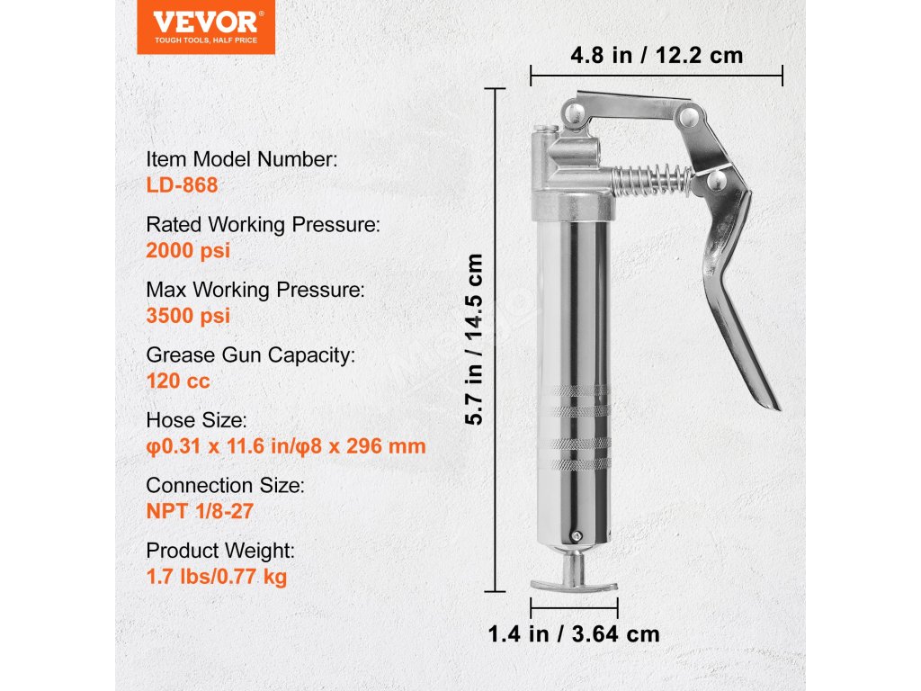 Naše ruční mazací pistole je vysoce kvalitní mazací nástroj, který vydrží maximální pracovní tlak 3500 psi. Ať už pracujete v továrně, na farmě, na staveništi, v rybářském průmyslu nebo v hornictví, naše mazací pistole dokáže dokonale provádět mazací práce a přinese vám bezproblémovou práci!