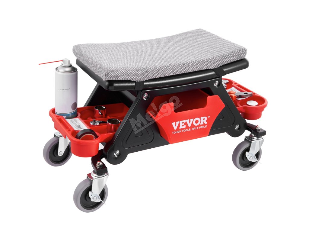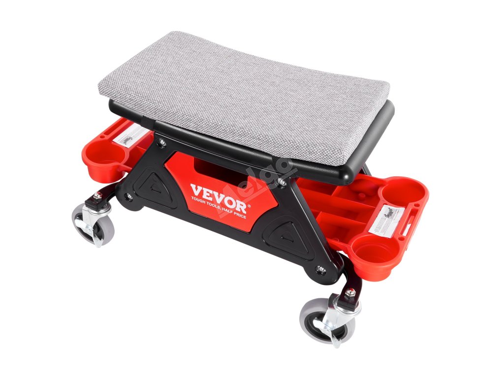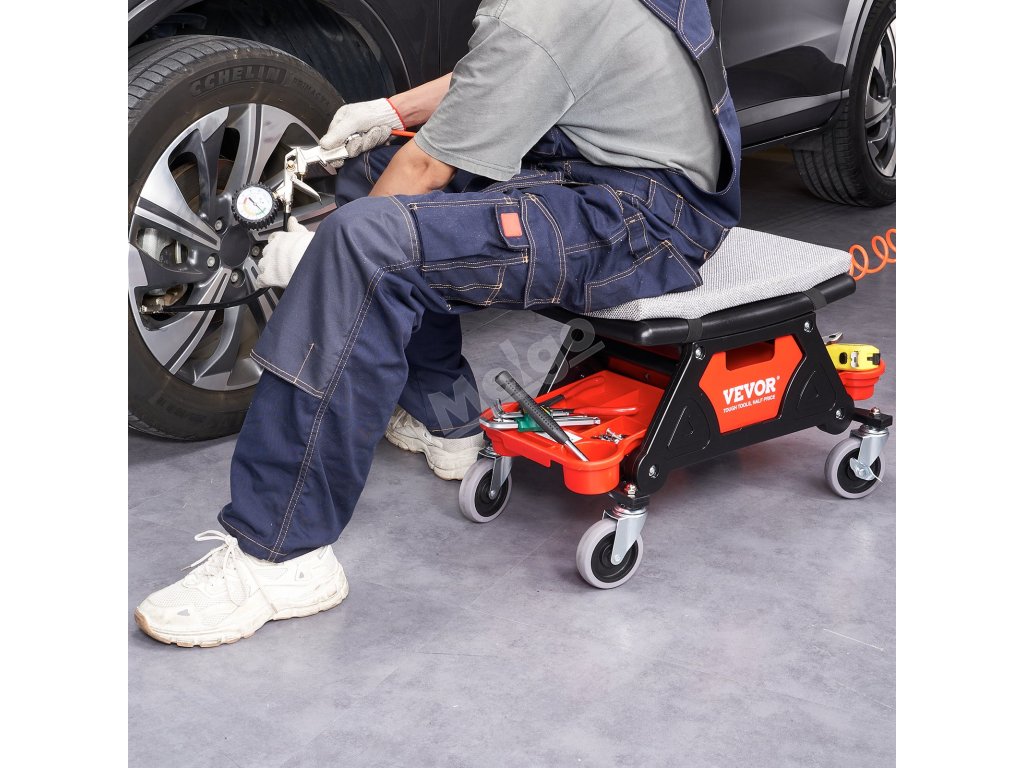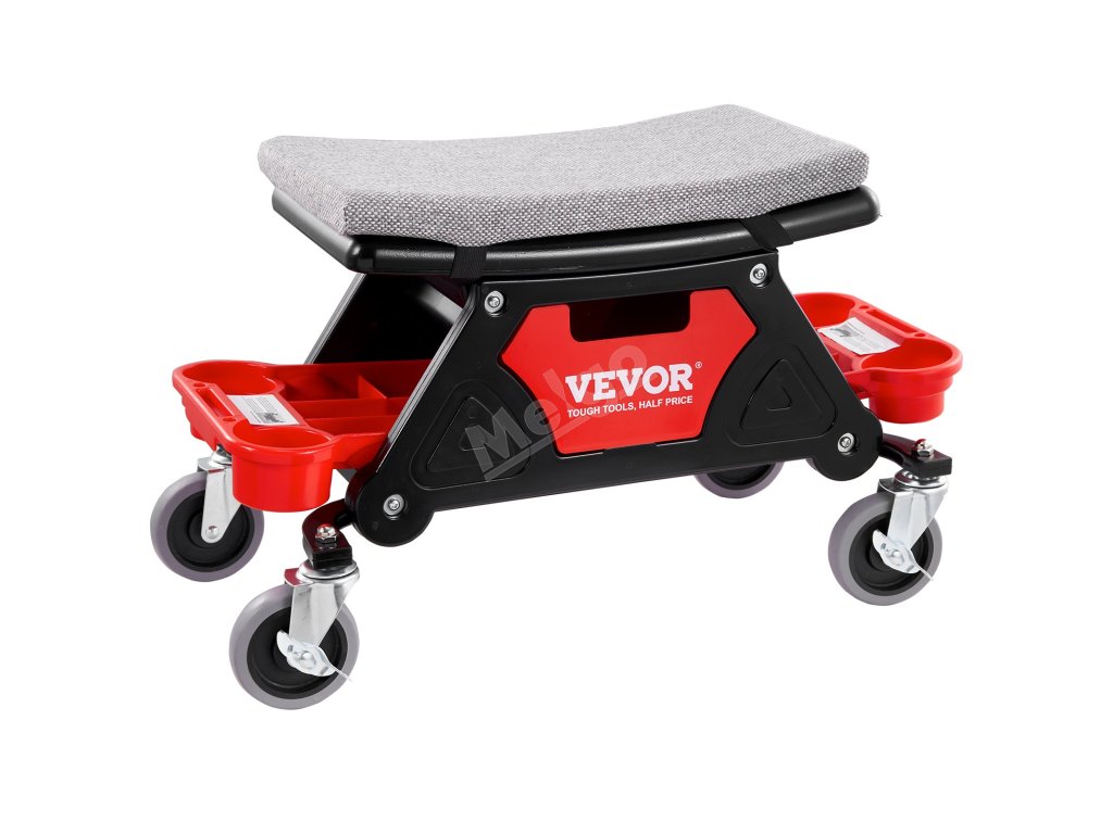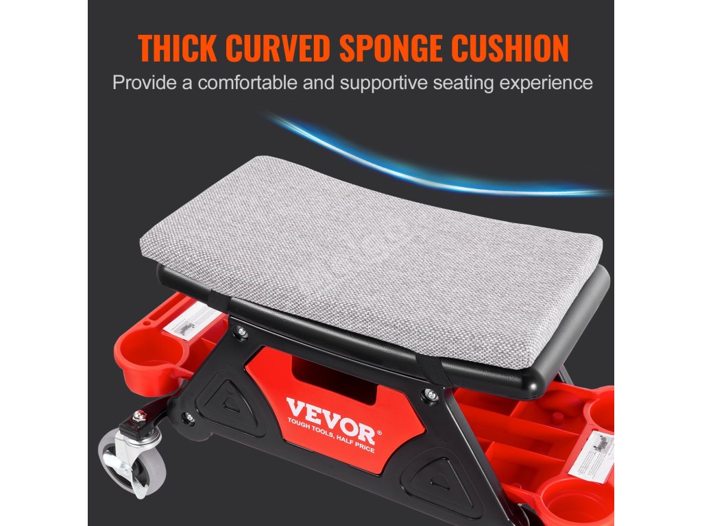 Toto sedadlo na kolečkách zajišťuje hladký klouzavý pohyb díky 4palcovým univerzálním gumovým kolečkům a možnosti otáčení o 360°. Silný houbový polštář a ergonomický design sedadla poskytují maximální pohodlí, zatímco tři úložné přihrádky udržují vaše nářadí uspořádané a na dosah.