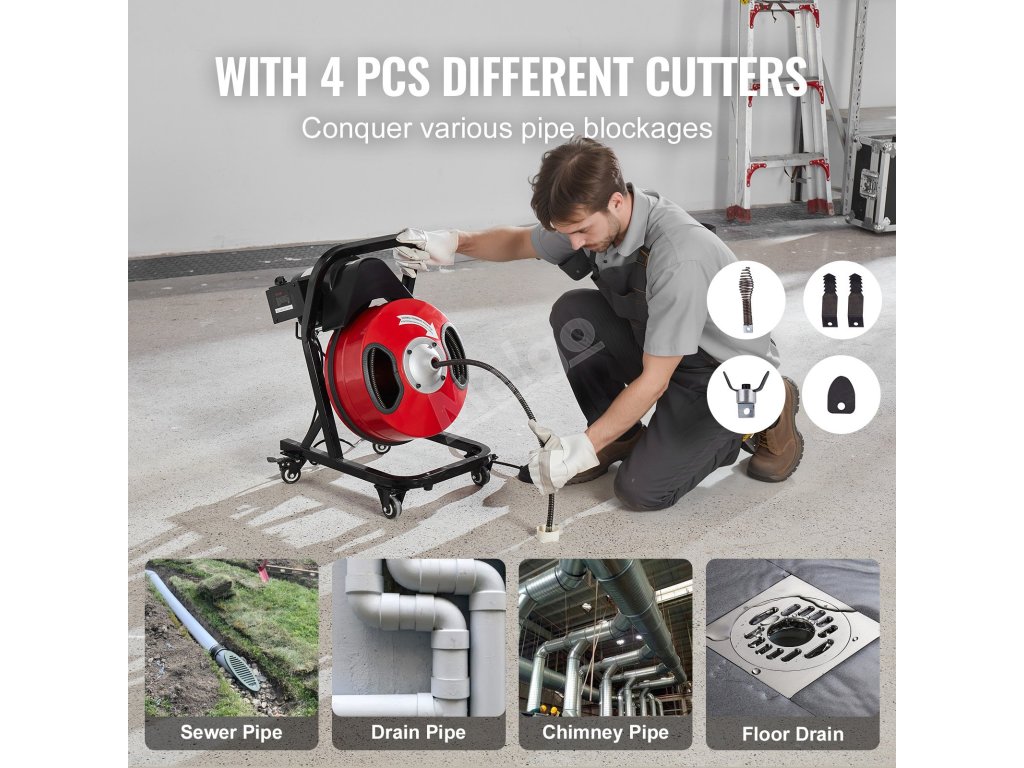 Díky 4 rychle vyměnitelným nožům, které jsou součástí balení, je tento stroj na čištění odtoku vynikající při odstraňování různých ucpávek, takže je ideální pro profesionální čištění odtoku. Nabízí všestranné využití v domácnostech, kancelářích a veřejných prostorách, od odblokování toalet po uvolnění ucpaných dřezů a podlahových odtoků.
