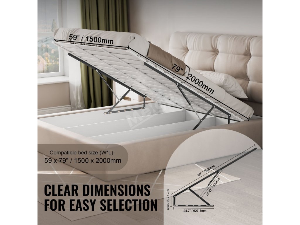 Mechanismus pro sklápěcí postel 59×79 in, nosnost 265 lbs s pístem