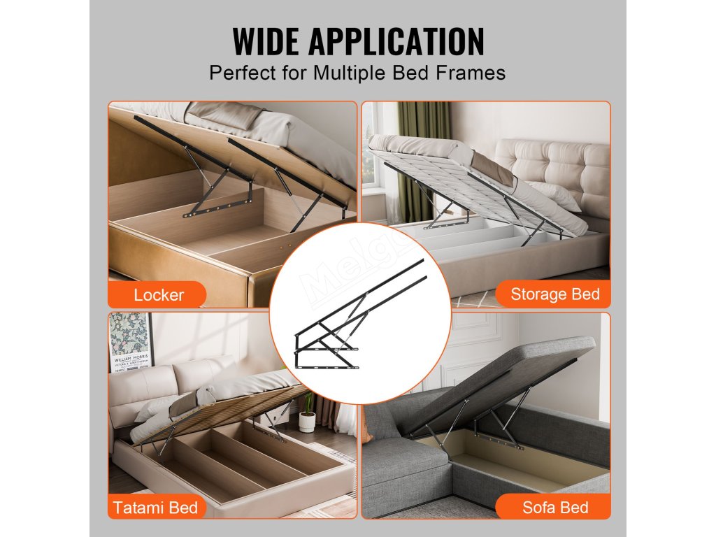 Zvedák úložného lůžka je vyroben z vysoce kvalitní tvrdé oceli, která unese až 132 kg na každou stranu, což zaručuje výjimečnou odolnost bez uvolňování a odírání.
