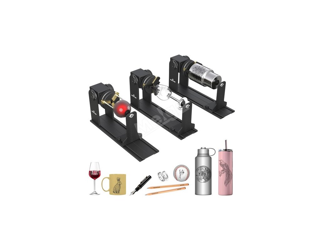 Rotační sklíčidlo je kompatibilní se všemi gravírovacími stroji Mecpow a 95 % laserových gravírovacích strojů na trhu. Pro větší pohodlí jej lze připojit k softwaru, jako je LightBurn a LaserGRBL.