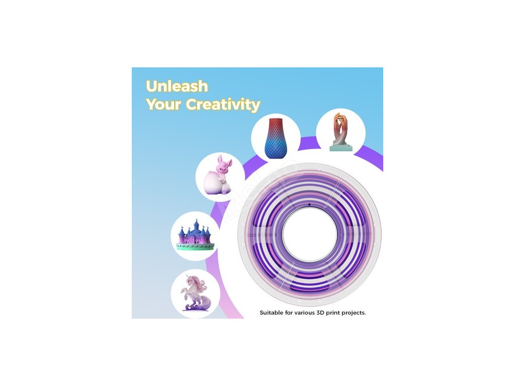 Mecpow PLA Rainbow Filament přináší jedinečné efekty měnící barvu, které odemykají neomezený tvůrčí potenciál vašich projektů. Vytváří zářivé duhové gradienty, čímž zvyšuje realističnost a vizuální přitažlivost vašich 3D tištěných děl. S filamentem PLA Rainbow můžete bez námahy dosáhnout dynamických barevných přechodů a proměnit své projekty v působivé, realistické výtvory.