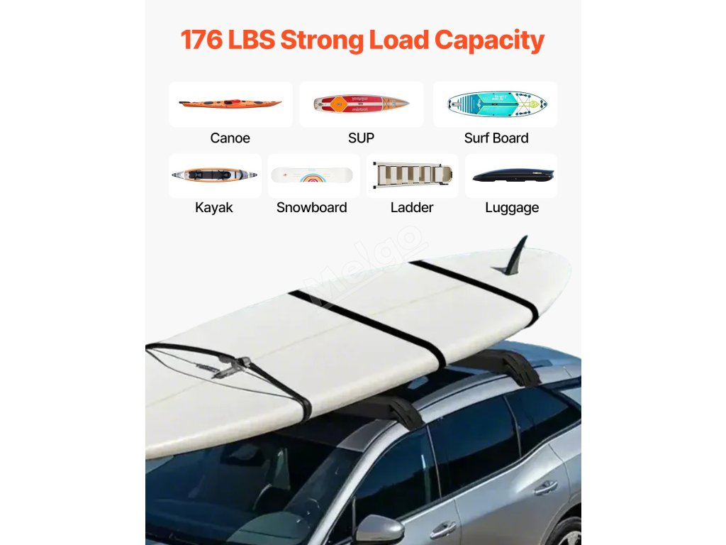 Naše 31,5palcové měkké podložky pod střešní nosič jsou kompatibilní s většinou vozidel s bočními ližinami nebo bez nich a poskytují nosnost až 176 kg. Tyto podložky pod střešní nosič kajaků jsou vyrobeny z měkkých, ale odolných materiálů a poskytují bezpečné a spolehlivé řešení pro přepravu kajaků, kánoí, SUP, snowboardů atd.