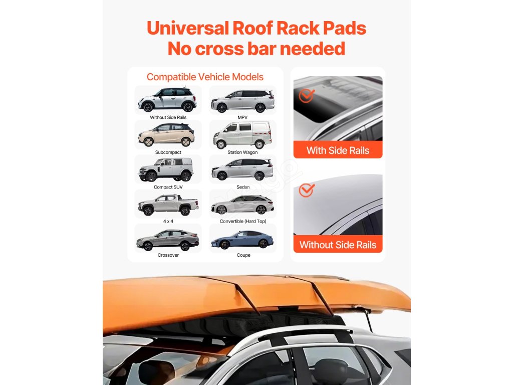 Naše 33palcové měkké střešní nosiče jsou kompatibilní s většinou vozidel s bočnicemi nebo bez nich a poskytují nosnost až 176 kg. Tyto podložky pod střešní nosič kajaků jsou vyrobeny z měkkých, ale odolných materiálů a poskytují bezpečné a spolehlivé řešení pro přepravu kajaků, kánoí, SUP, snowboardů atd.