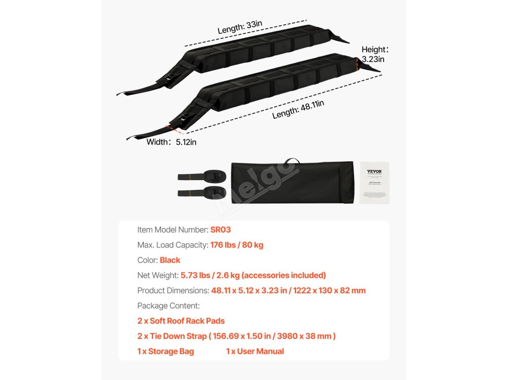 Měkké podložky na střešní nosič 33-inch 176lbs 2 popruhy taška