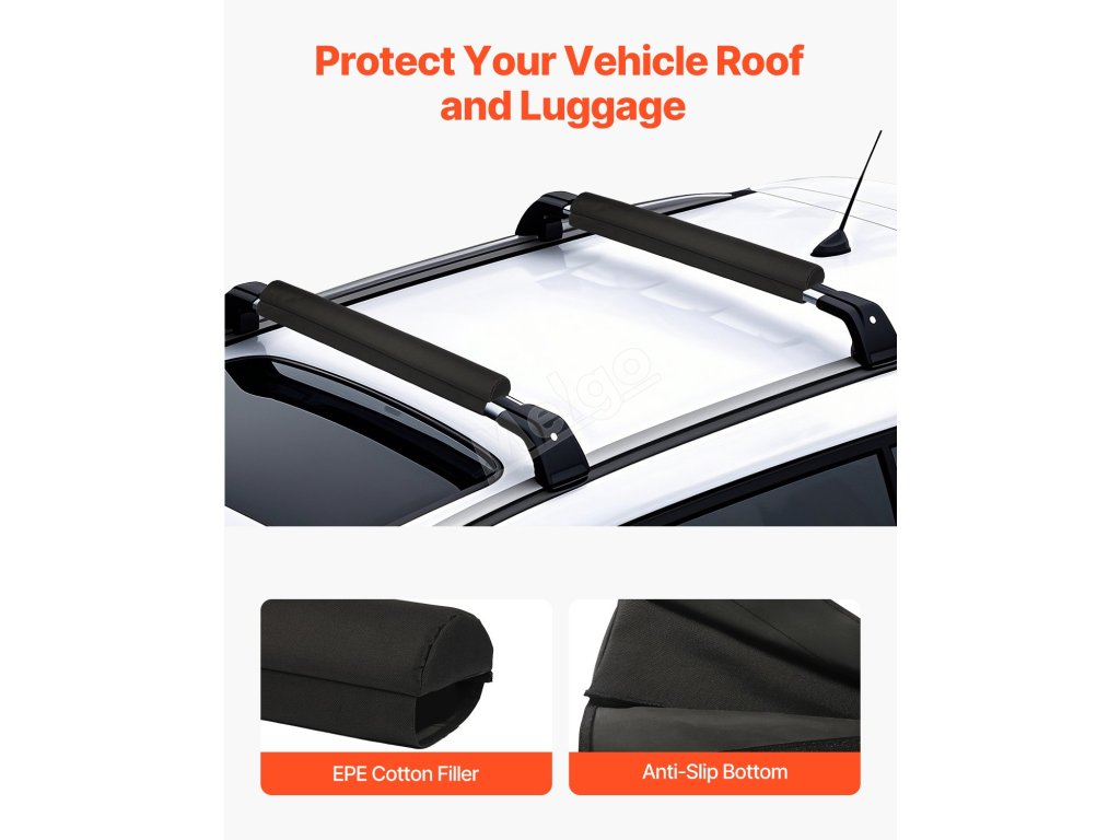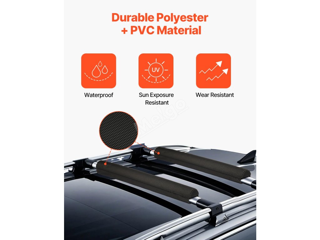 Naše chrániče střešních příčníků jsou vhodné pro většinu vozidel s příčníky a snesou zátěž až 88 kg a nabízejí snadnou instalaci pomocí pásků na suchý zip a vázacích pásků. Jsou vyrobeny z odolného PVC 600D a bavlněné výplně EPE a poskytují vynikající ochranu pro vaše různé outdoorové vybavení, jako je kajak, SUP, surfová prkna.