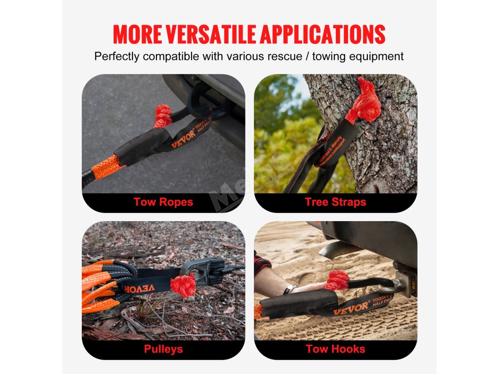 Naše záchranná sada s měkkou smyčkou je ideální pro různé záchranné scénáře a je kompatibilní s tažnými lany, háky, kladkami navijáků a dalším vybavením.