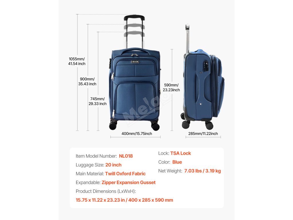 Měkký kufr 20 inch / 50.8 cm, rozšiřitelný, 4 kolečka, TSA zámek
