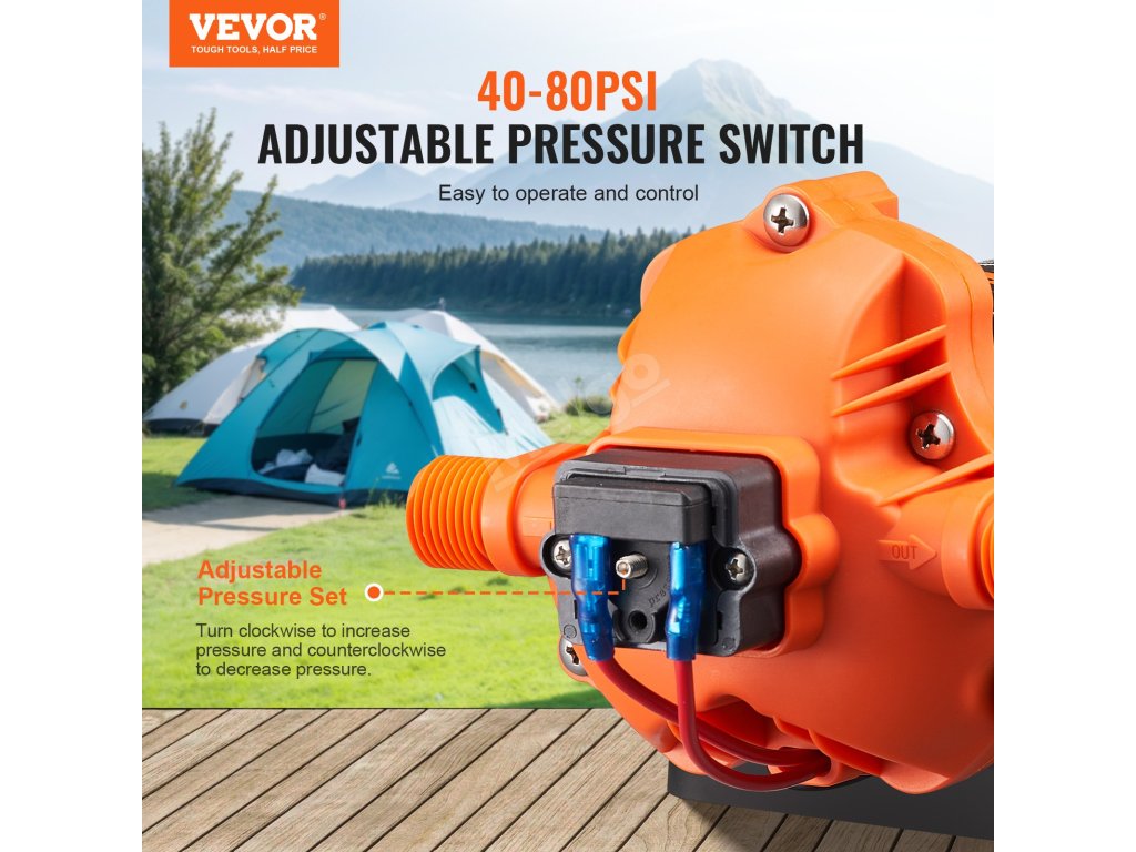 Pomocí našeho 12V membránového čerpadla můžete snadno regulovat tlak vody. Jednoduše otevřete tlakový spínač šroubovákem, najděte středový otvor pro šroub a otáčejte ve směru hodinových ručiček pro zvýšení tlaku nebo proti směru hodinových ručiček pro jeho snížení. Přizpůsobte si spotřebu vody svým potřebám a efektivně šetřete vodou.