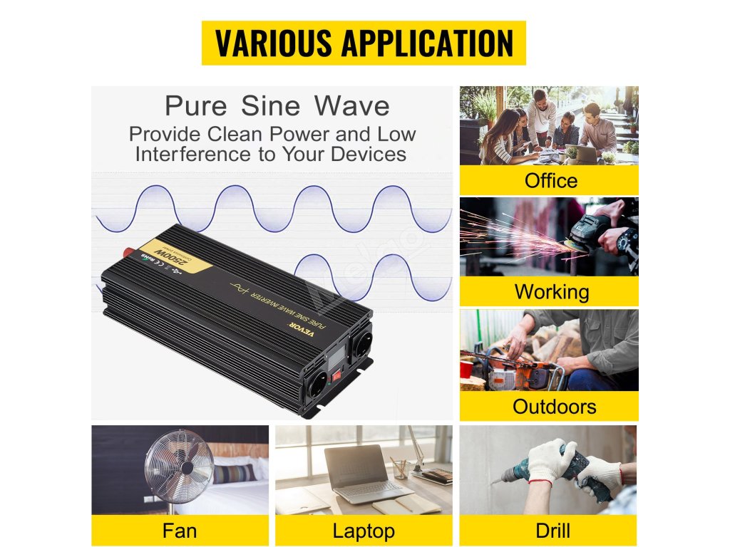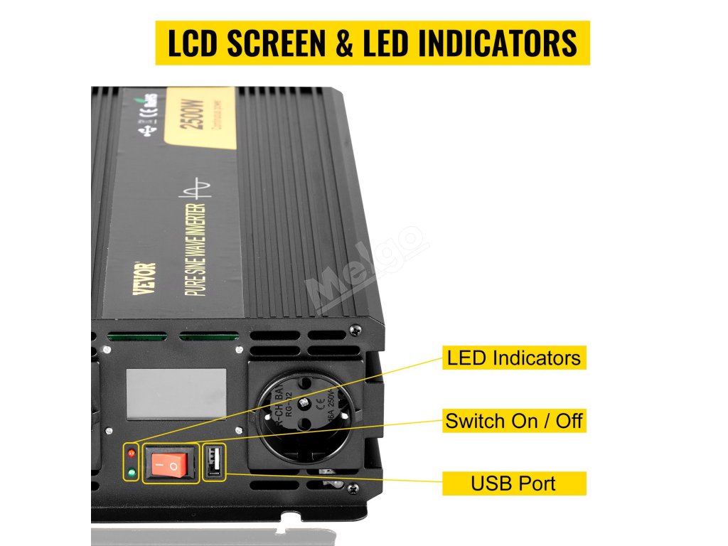 Mophorn 2500W DC12V AC230V měnič s čistou sinusovou vlnou