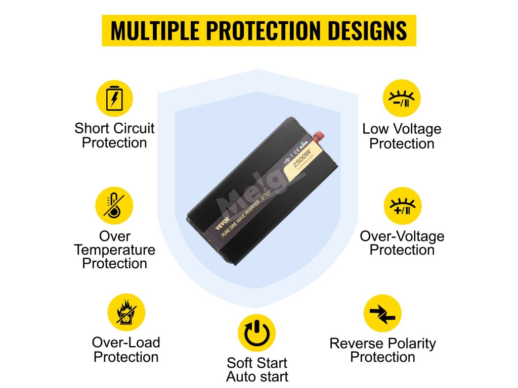 Zažijte spolehlivou konverzi energie s naším 2500W střídačem s čistou sinusovkou, který je navržen tak, aby poskytoval čisté střídavé napájení pro citlivá elektronická zařízení. Je ideální pro použití ve vozidlech a účinně převádí stejnosměrné napětí 12 V na střídavé napětí 230 V, čímž poskytuje optimální napájení pro notebooky, domácí spotřebiče a další zařízení. Jeho vysokorychlostní chladicí ventilátor a komplexní bezpečnostní ochrany zajišťují bezpečný a stabilní provoz v různých aplikacích.