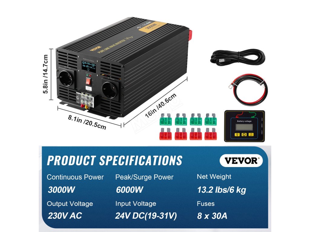 - 3000W střídač s čistou sinusovkou