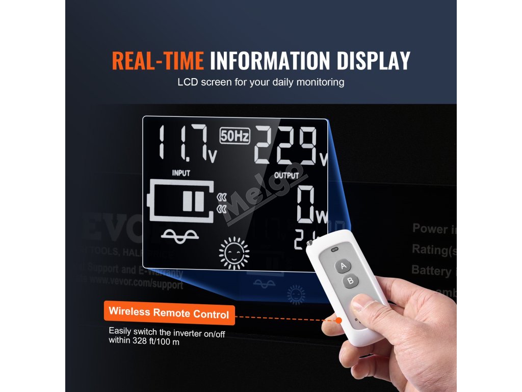 Díky funkci dálkového ovládání našeho měniče energie je pohodlí na dosah ruky. I když je váš měnič nainstalován na těžko přístupných místech, naše dálkové ovládání vám umožní bez námahy zapnout a vypnout napájení v dosahu 100 metrů. Užijte si svobodu ovládání měniče na dálku!