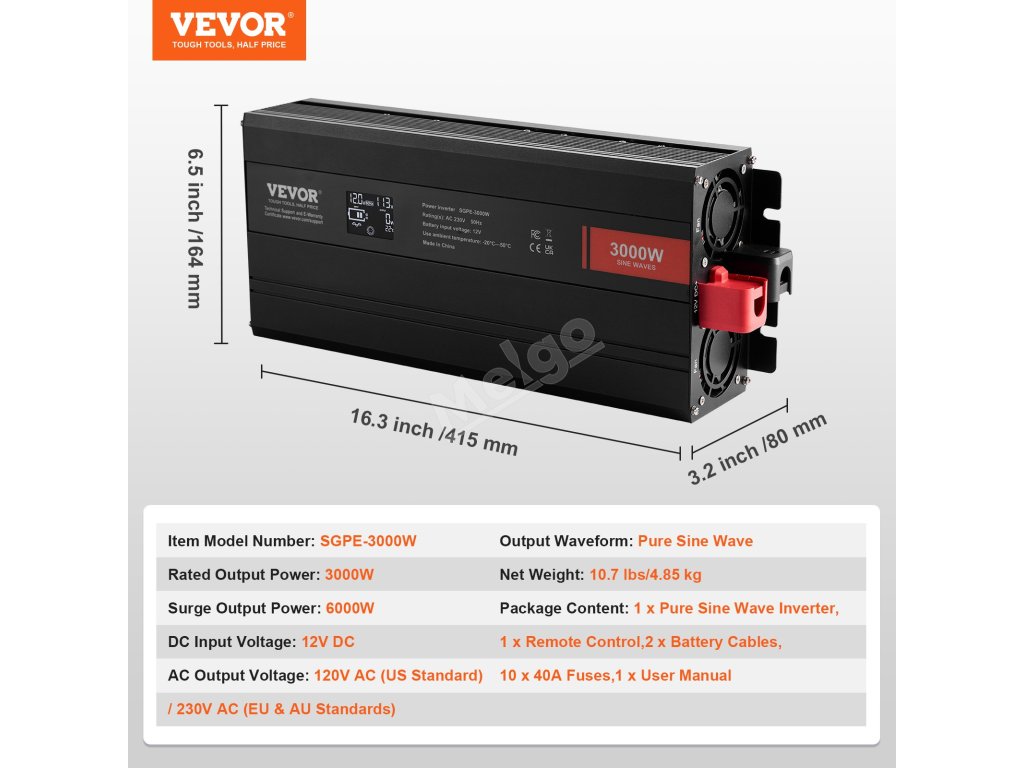 3000W střídač s čistou sinusovkou