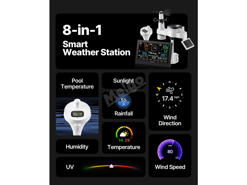meteorologická stanice 7 v 1 s Wi-Fi a bazénovým teploměrem na solární pohon