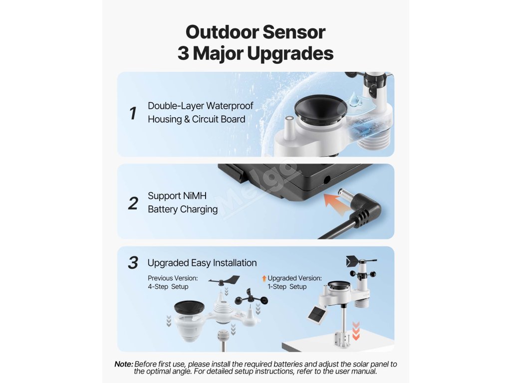 Meteostanice 7 v 1 wi-fi, 190,5 mm displej, solární senzor, srážkoměr