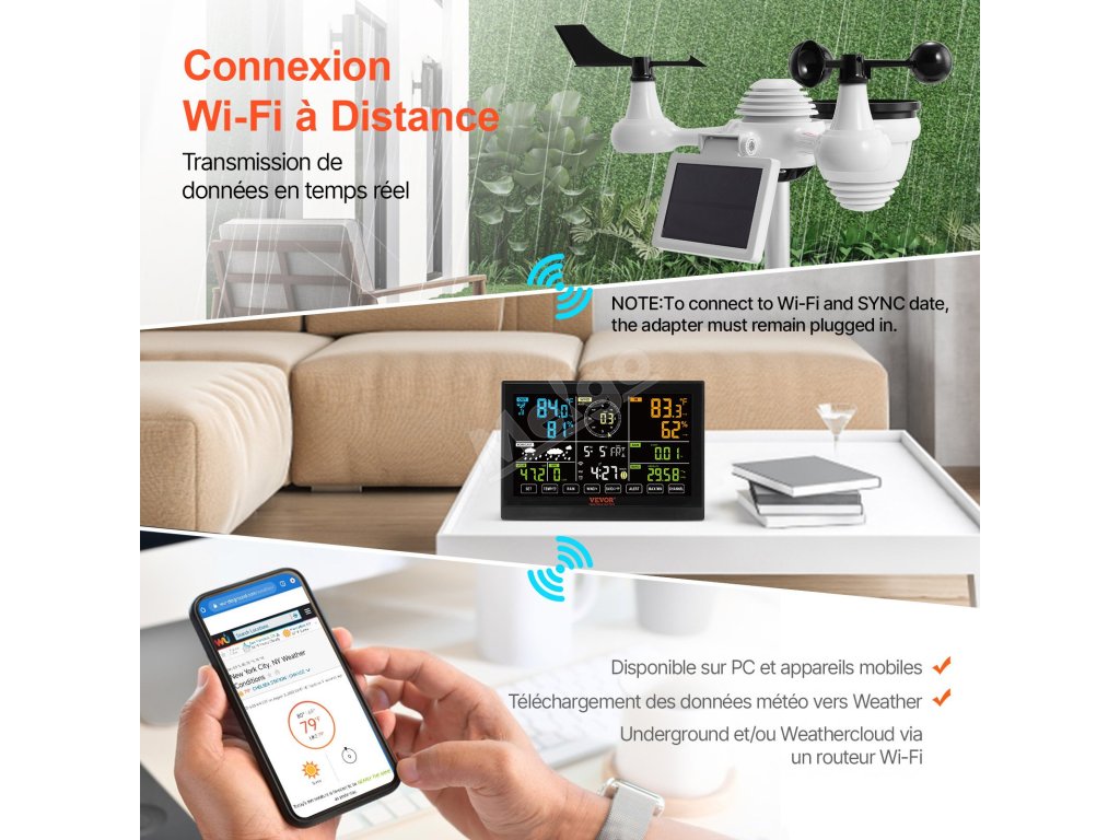 VEVOR 7,5 in Multifunkční Wi-Fi meteorologická stanice se solárním napájením