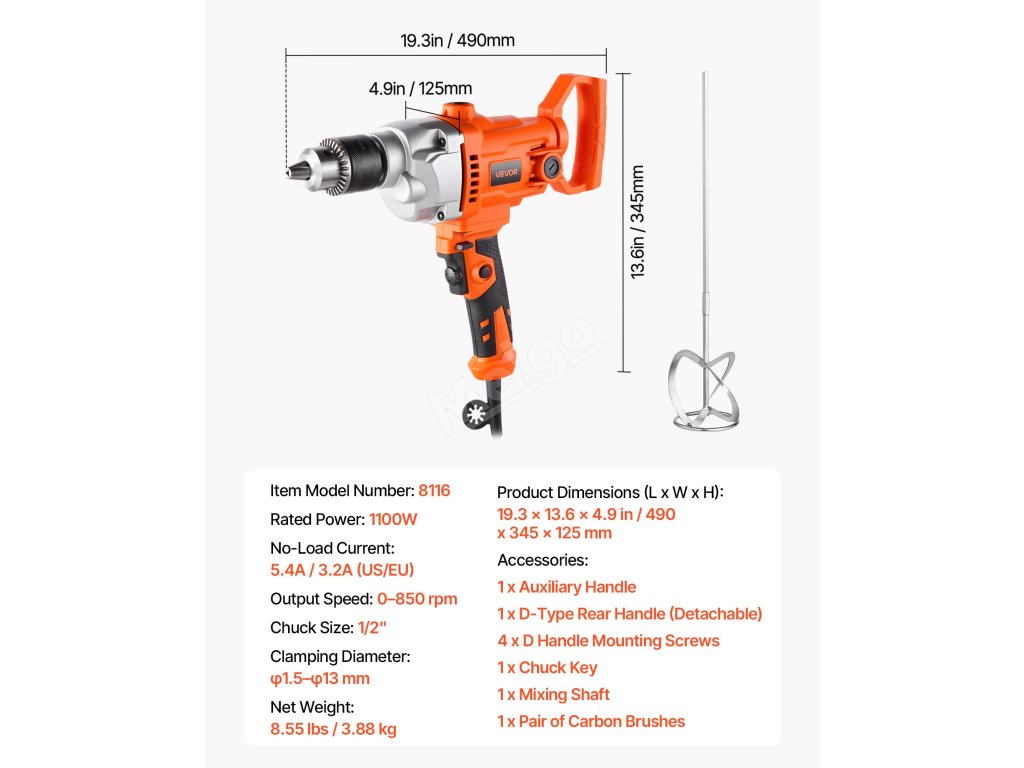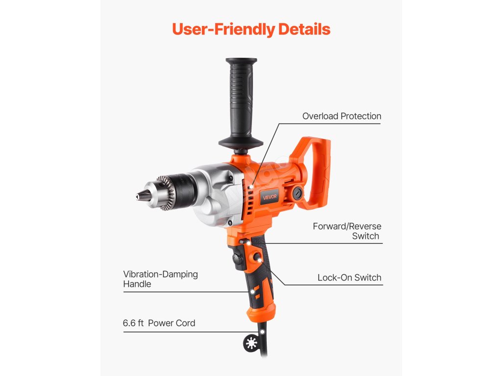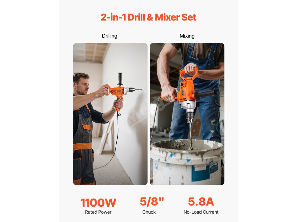 Tento vrtací mixér s průměrem 5/8 palce (15,89 mm) kombinuje míchání a vrtání v jednom nástroji, který splňuje širokou škálu úkolů. Plynulá regulace otáček umožňuje přesné nastavení pro různé materiály, zatímco rukojeť nastavitelná v rozsahu 360° nabízí větší pohodlí a flexibilitu. Ideální pro kutilské i profesionální práce.