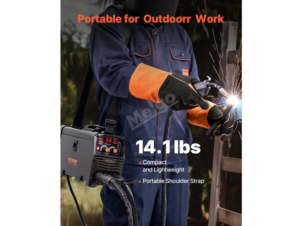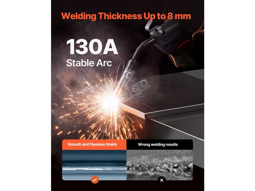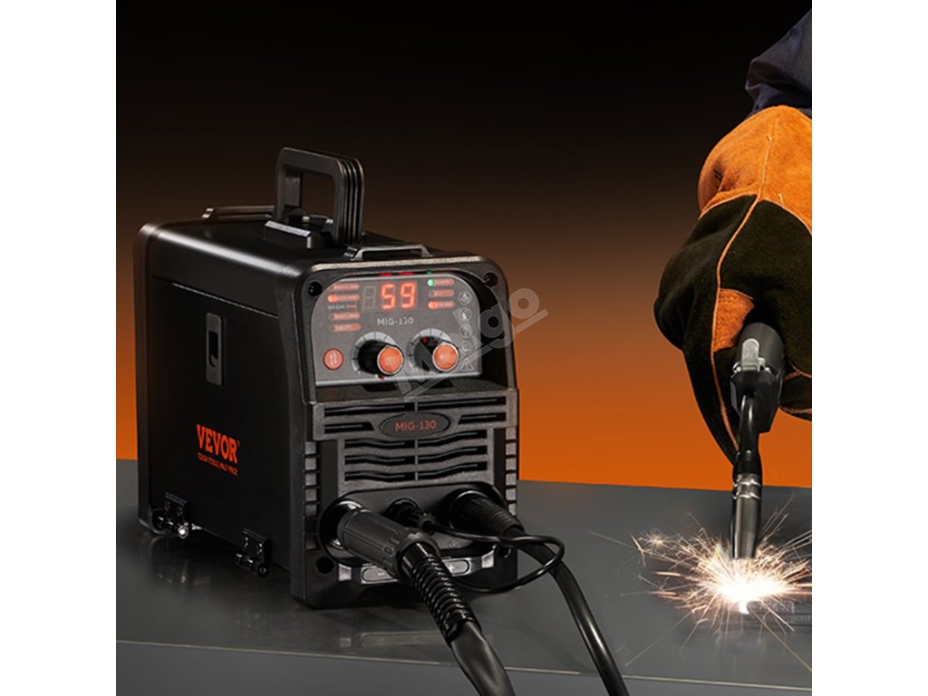 Tato svářečka poskytuje silný výstupní proud 130 A, který umožňuje svařovat materiály o tloušťce až 8 mm.