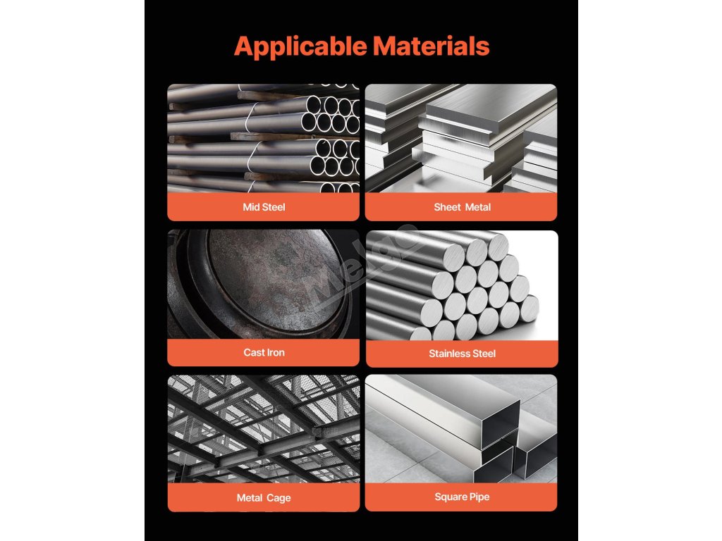 Je kompatibilní s různými materiály včetně měkké oceli, nerezové oceli, litiny, plechu, čtyřhranných trubek a kovové klece.