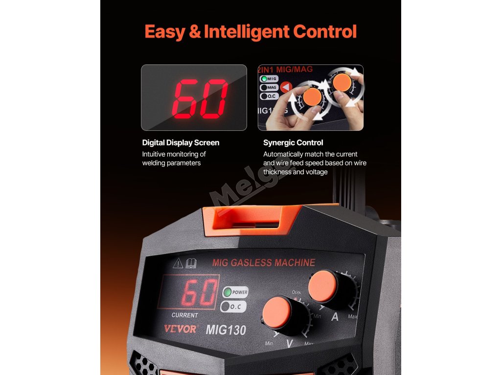 Mig svářečka 130Amp synergic bezplynová IGBT digitální displej