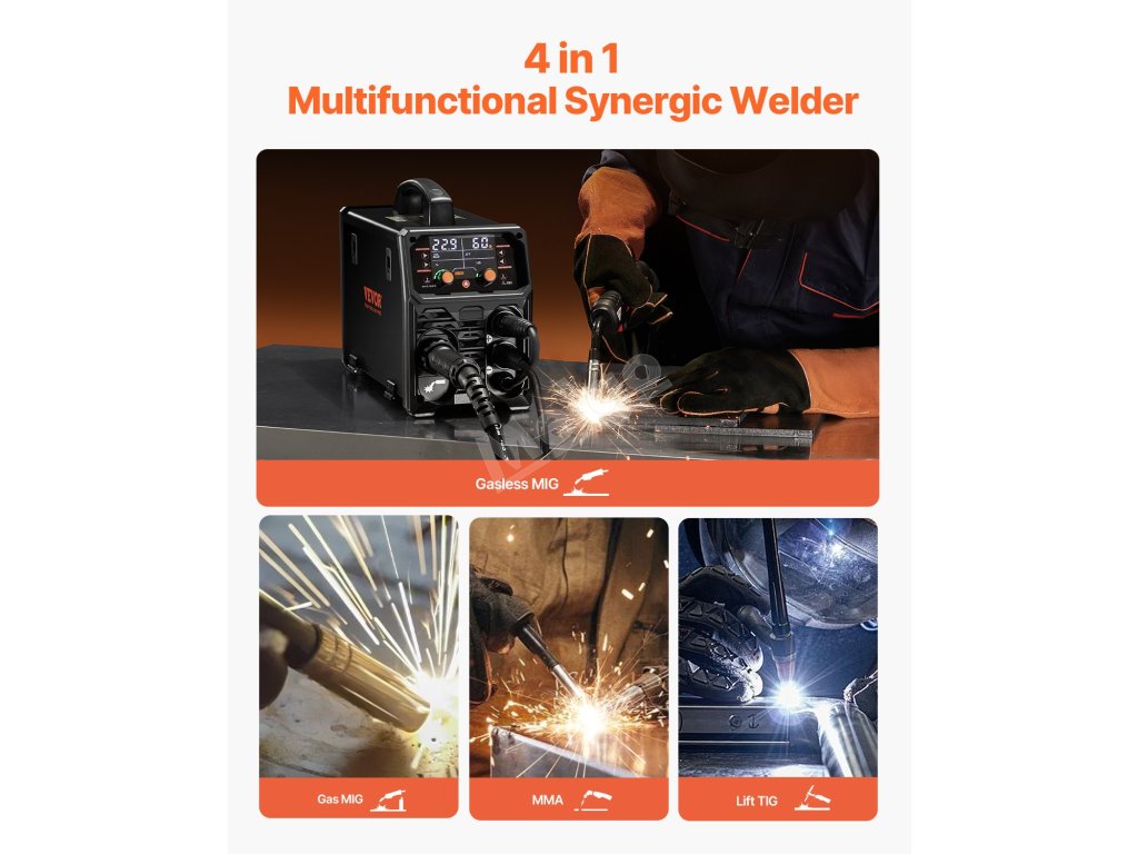Mig svářečka 200 A synergická 4v1 mig/fluxcore/mma/lift tig s igbt