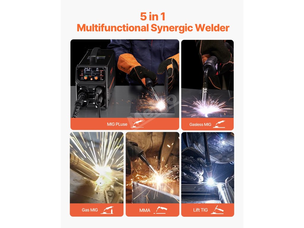 Mig svářečka 250 A, 5 v 1, pulzní mig/mma/lift tig, igbt, lcd
