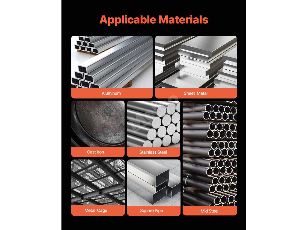Je kompatibilní s různými materiály včetně měkké oceli, hliníku, nerezové oceli, litiny, plechu, čtyřhranných trubek a kovové klece.