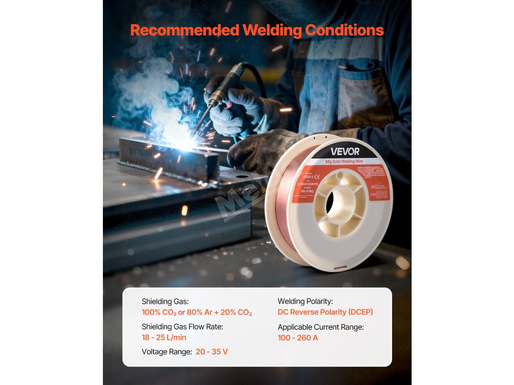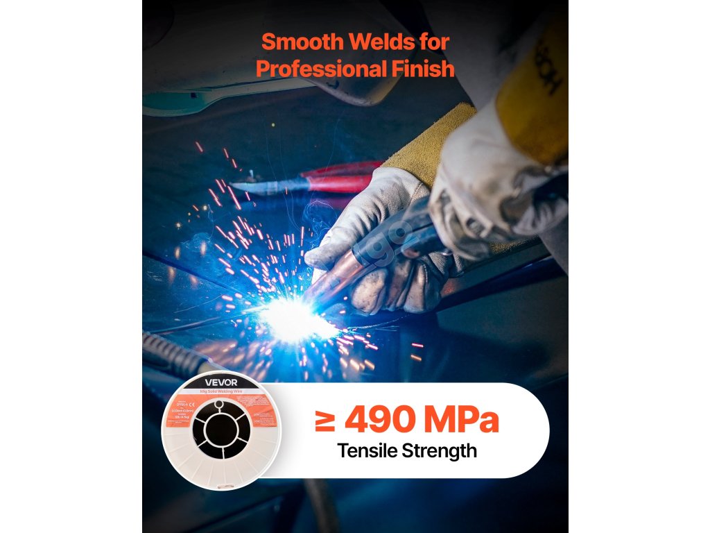 Pevný svařovací drát MIG VEVOR 0,03" 10 lb ER70S-6 poskytuje pevné a konzistentní svary s plynulým posuvem drátu, nízkým rozstřikem a stabilním obloukem. Podporuje svařování ve všech polohách a vysokou pevnost v tahu pro spolehlivý výkon při svařování v automobilovém průmyslu, strojírenství a při kutilských projektech.