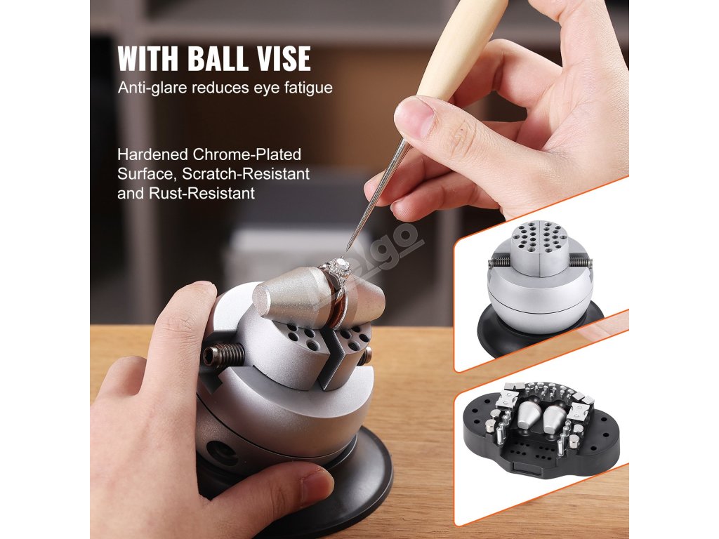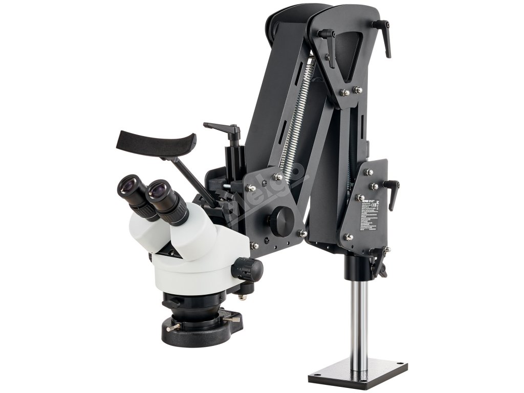 Stereomikroskop je dodáván s inkrustovaným kulovým svěrákem s tvrzeným chromováním, který je odolný proti poškrábání, rzi a oslnění, což snižuje únavu očí.