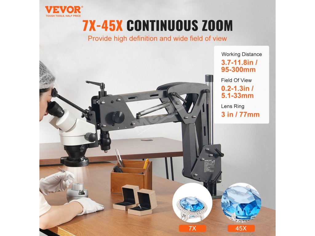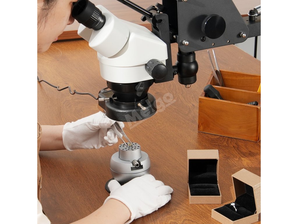 Náš šperkařský mikroskop s odpruženým držákem a plynulým 7X-45X zoomem poskytuje jasné a stereoskopické mikroskopické efekty. Toto zrcadlový mikroskop se široce používá při vykládání šperků, řemeslném gravírování, opravách desek plošných spojů, tovární kontrole, oceňování šperků, opravách hodinek a dalších.
