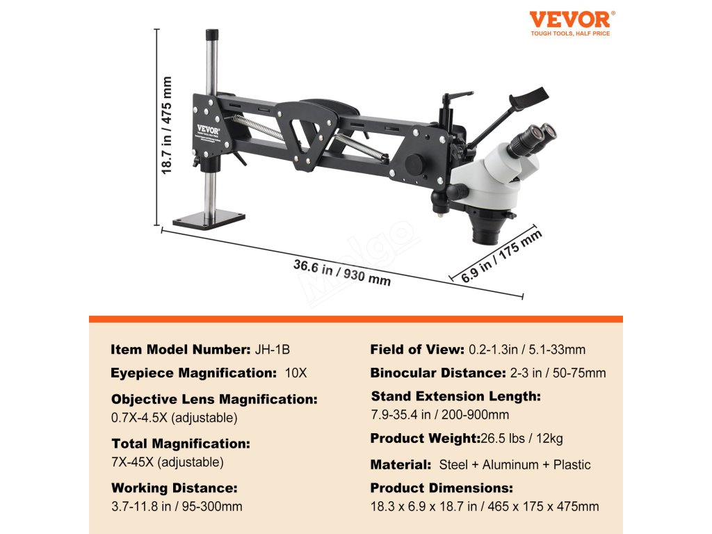 Pracovní výška 3,7-11,8 palce / 95-300 mm umožňuje pozorování vzorků různých velikostí. Tento šperkařský mikroskop lze flexibilně používat na různých pracovních stolech, stojanech nebo v jiných instalačních polohách, aniž by bylo nutné upravovat výšku pracovního stolu.