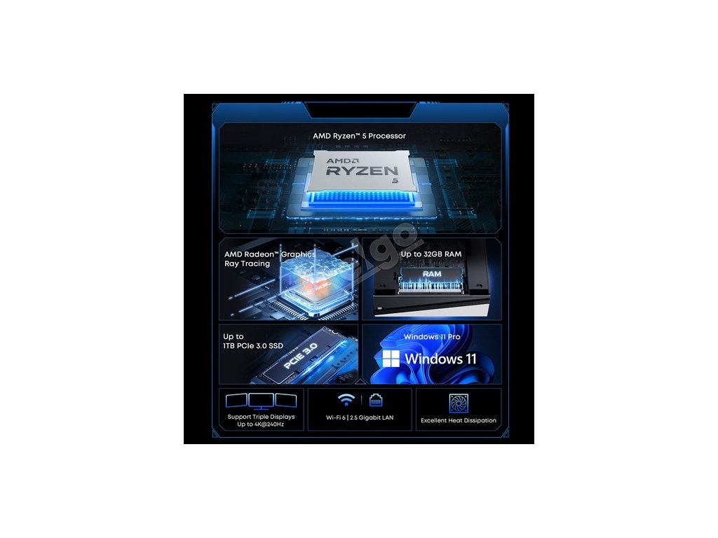CHUWI UBox je poháněn šestijádrovým procesorem AMD Ryzen 5 s 12 vlákny, který zajišťuje bleskovou rychlost a bezproblémový multitasking. Ať už se jedná o hraní her, tvorbu obsahu nebo práci, užijte si plynulý výkon, rychlou odezvu a produktivitu nové úrovně v kompaktním provedení.