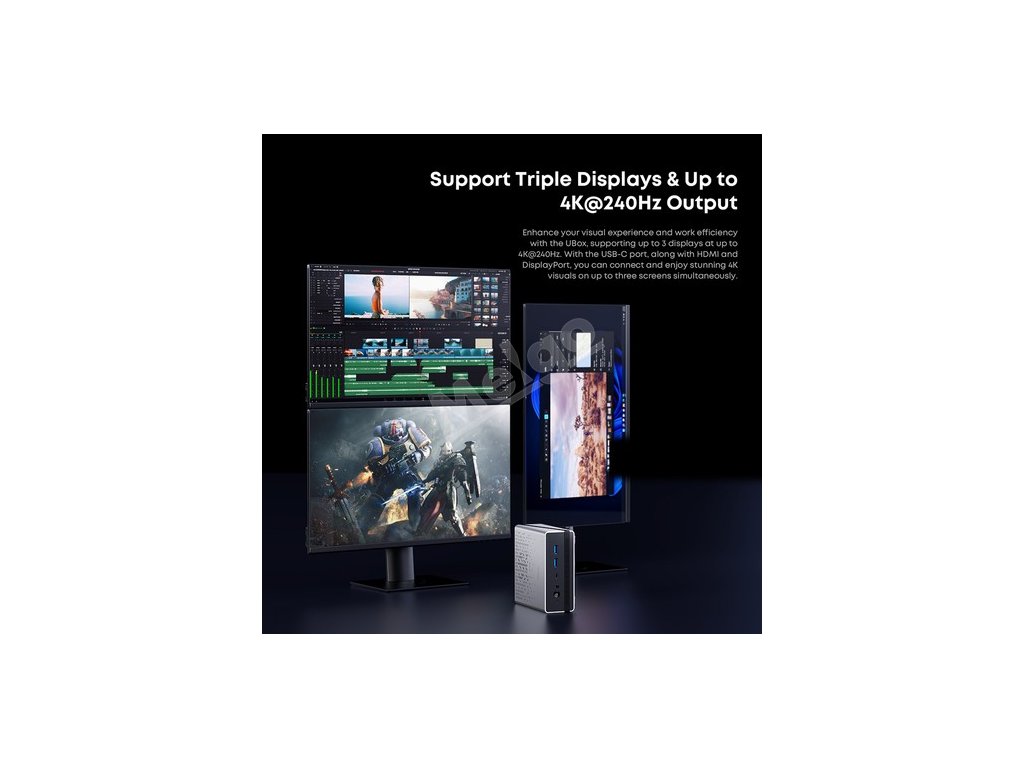 Mini PC UBox poskytuje působivý výkon v ultrakompaktním provedení 128,3 × 130 × 52 mm. Je lehký a snadno přenosný, bez problémů se vejde do batohu, zásuvky nebo stísněného prostoru - a přitom nabízí výkon, který potřebujete.