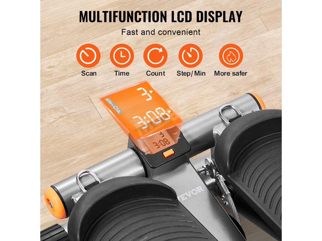 Digitální displej na stepperu zaznamenává vaše kroky, čas a spálené kalorie. To vám pomůže lépe pochopit vaše pokroky ve cvičení, což vám pomůže podniknout další kroky ve vašem cvičebním plánu, aby bylo vaše cvičení účelnější a efektivnější.