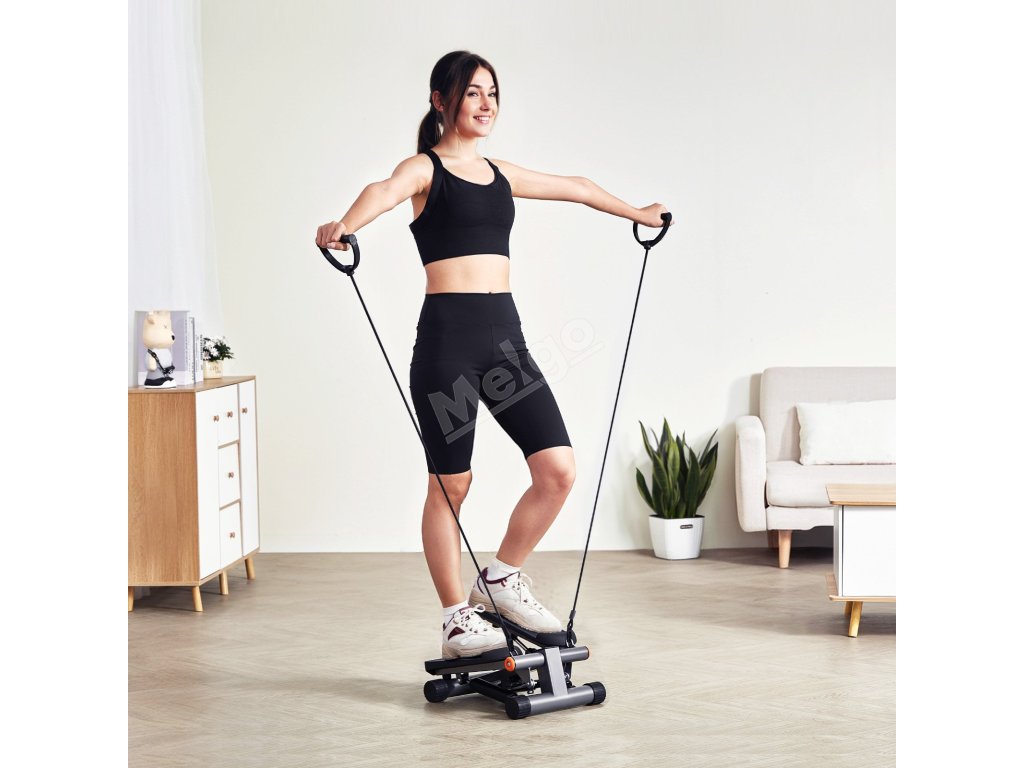 Tento mini stepper s odporovými pásy nabízí komplexní cvičení, které kombinuje aerobní cvičení i svalový trénink, takže je ideální pro zlepšení silového tréninku nebo posilování.