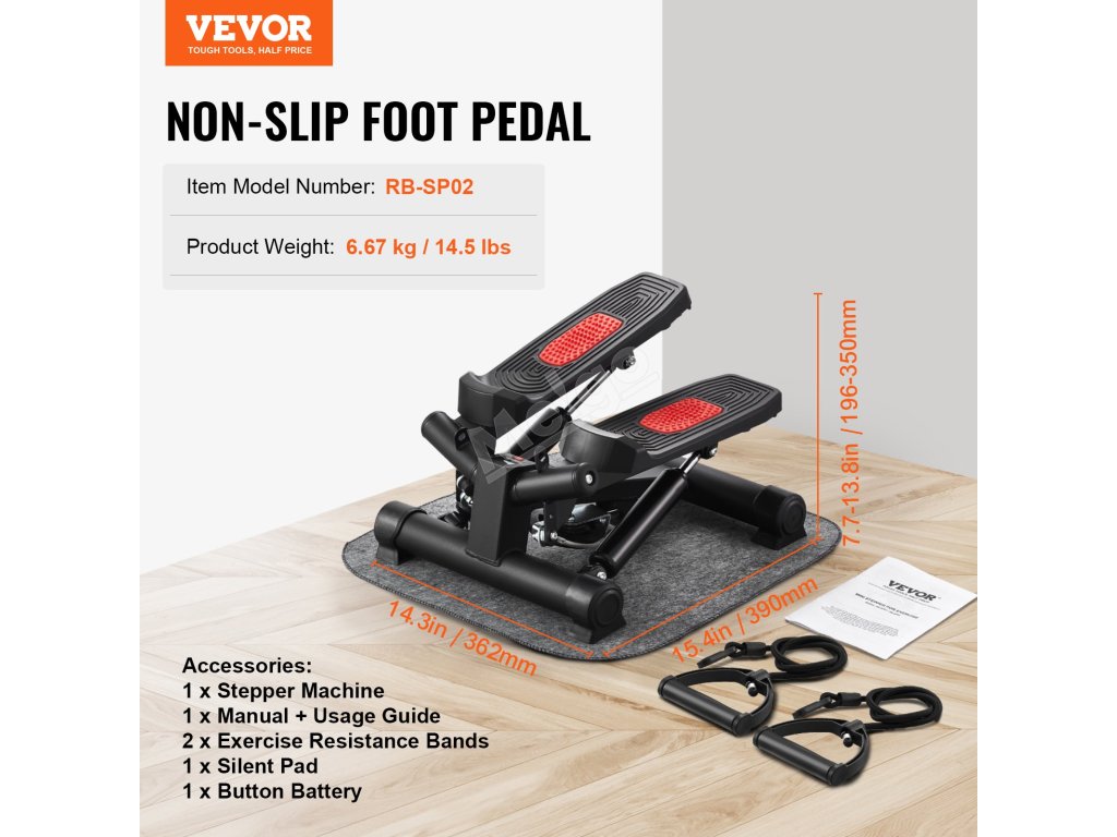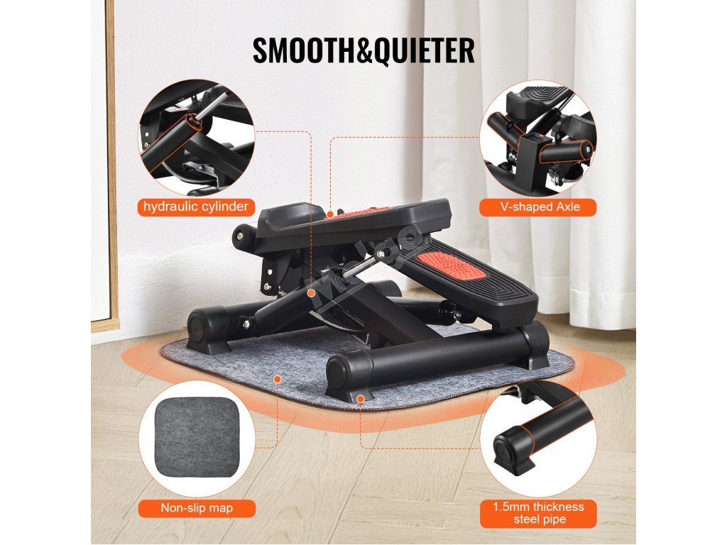 Hydraulický fitness stepper je vybaven 1,5 mm silným držákem, který zajišťuje plynulý krokový pohyb, takže si cvičení můžete vychutnat v tichosti. Vysoce kvalitní pružiny chrání vaše klouby, zvyšují odolnost a zvyšují stabilitu a trvanlivost s nosností 330 lbs/150 kg.