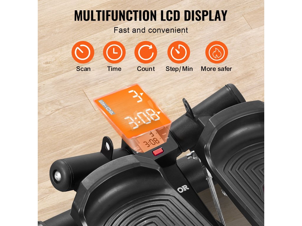 Digitální displej na stepperu zaznamenává vaše kroky, čas a spálené kalorie. To vám pomůže lépe pochopit vaše pokroky ve cvičení, což vám pomůže podniknout další kroky ve vašem cvičebním plánu, aby bylo vaše cvičení účelnější a efektivnější.