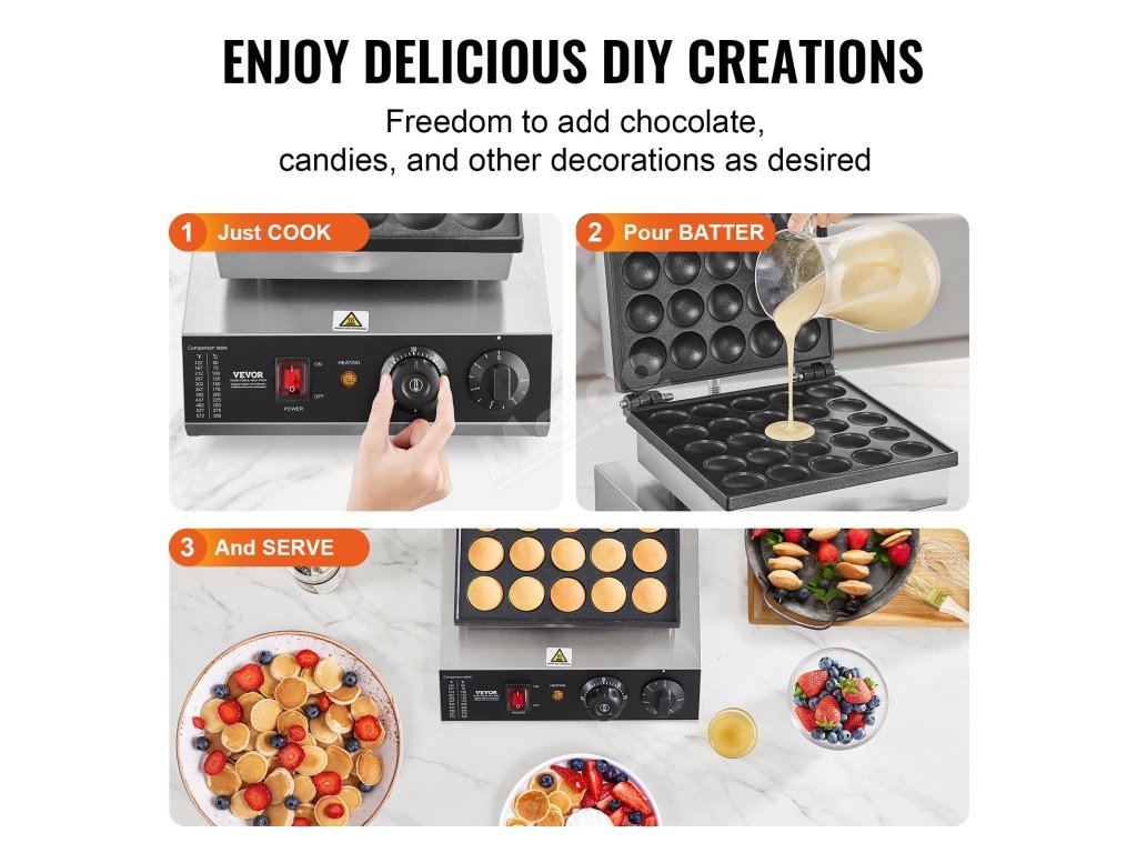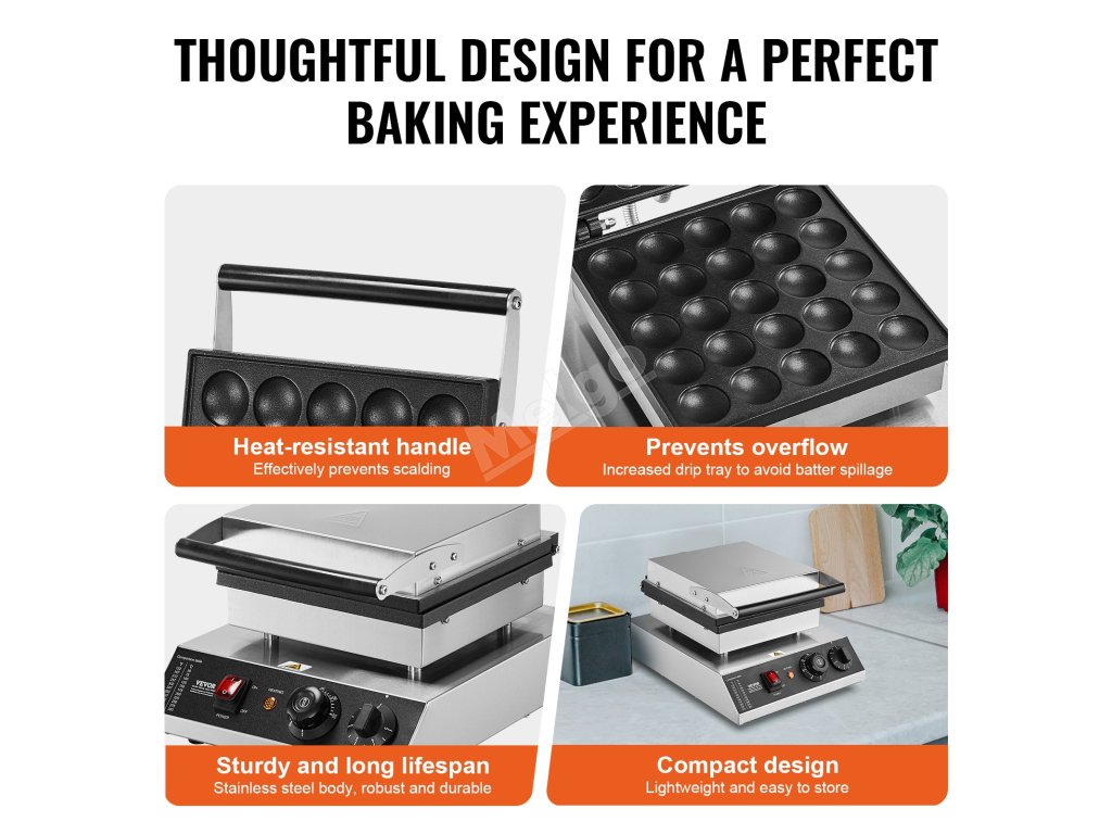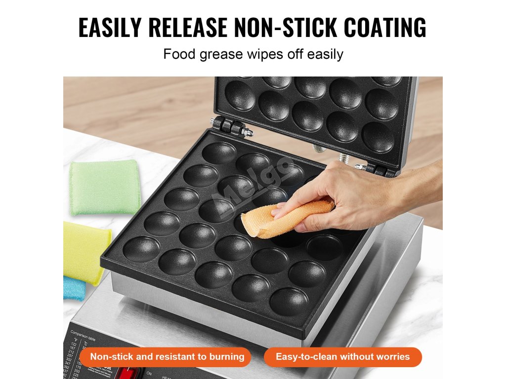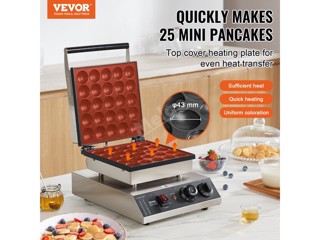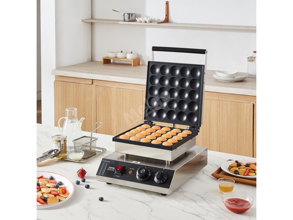 Mini stroj na poffertjes 25 ks 43 mm 1700 W nerez, tep. a čas
