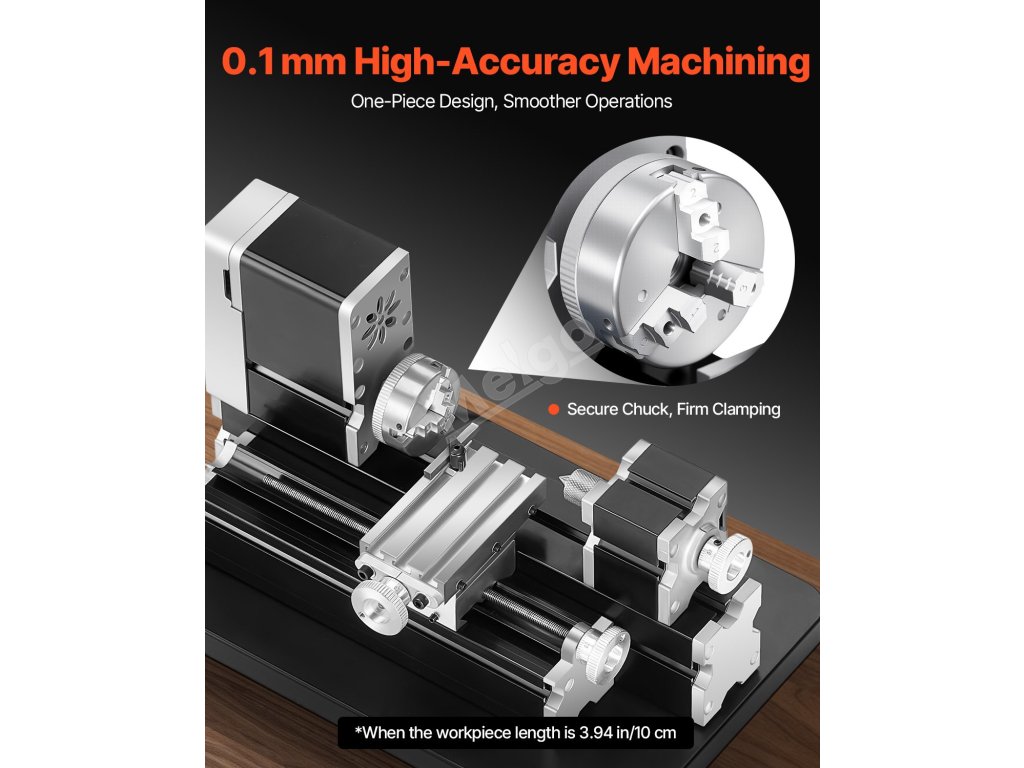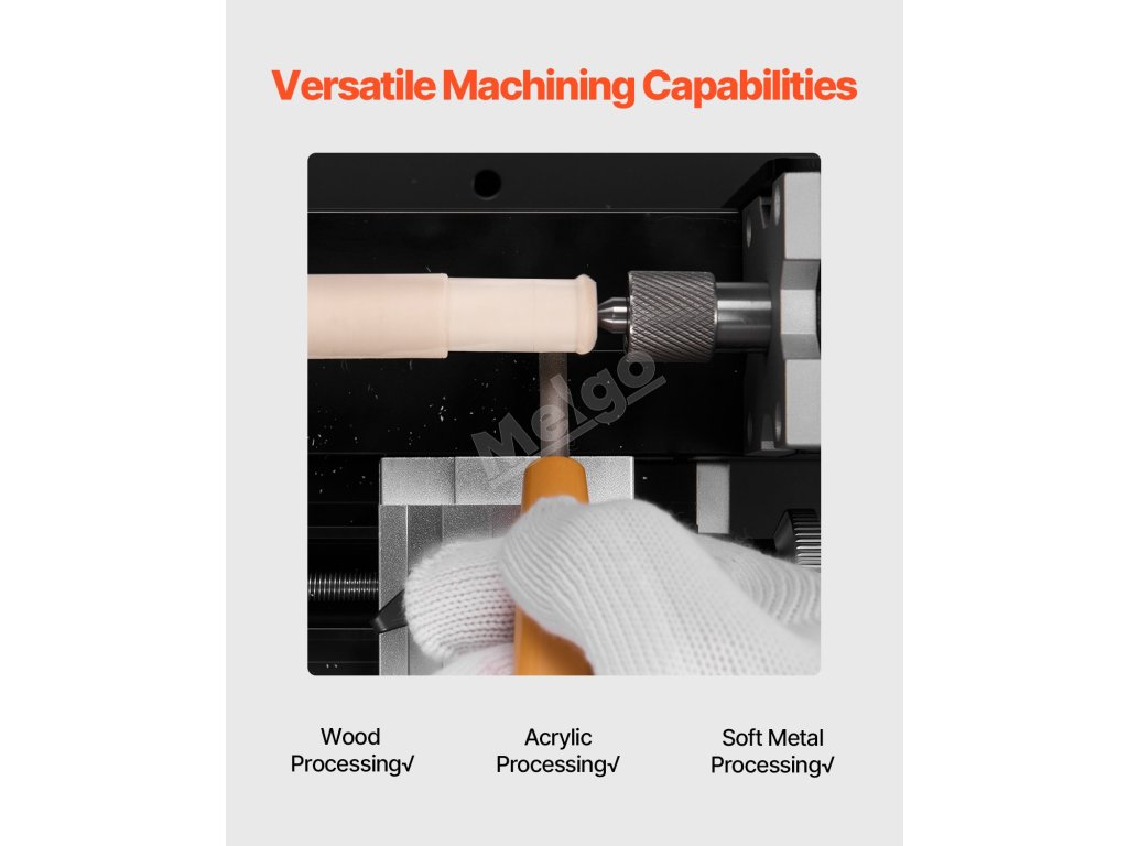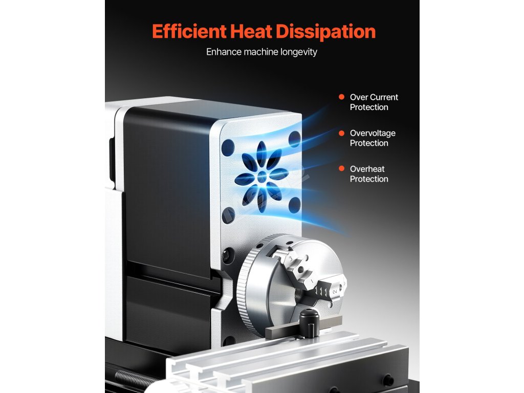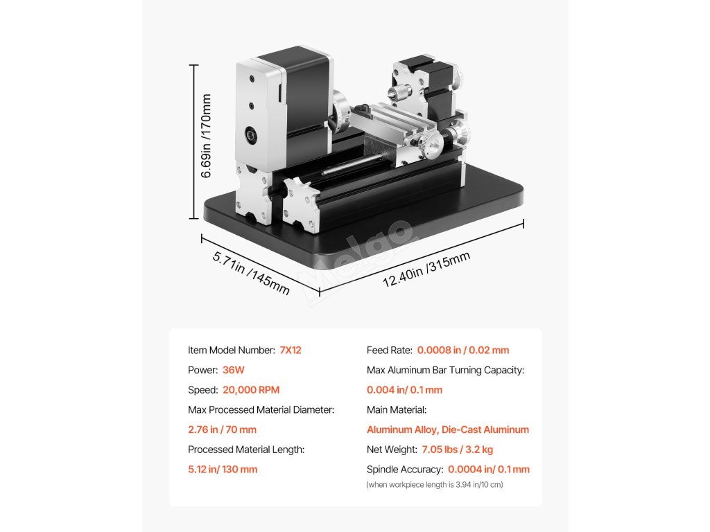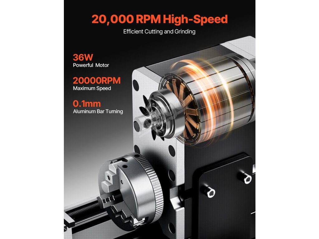 Tento mini soustruh na kov má maximální otáčky 20 000 ot/min pro efektivní řezání. Jeho kompaktní rozměry jsou vhodné pro výuku a malé projekty. Celokovová konstrukce je vyrobena tak, aby dlouho vydržela. Díky vestavěnému ventilátoru a několika ochranným krytům je ideální pro přesné obrábění a různé aplikace.