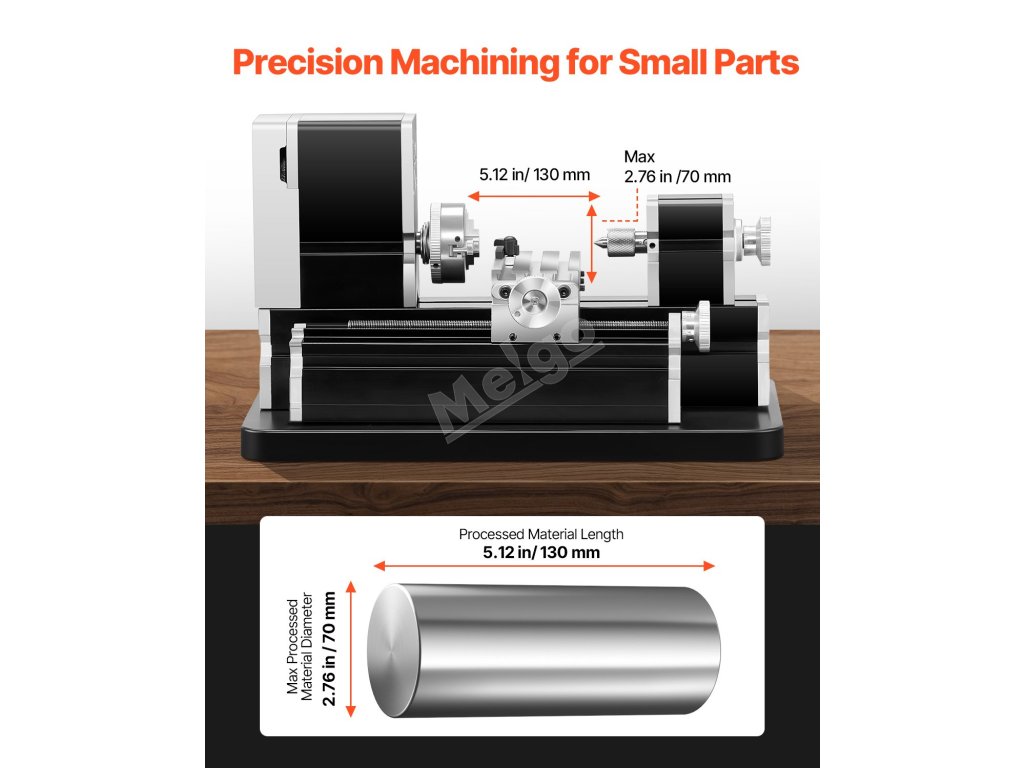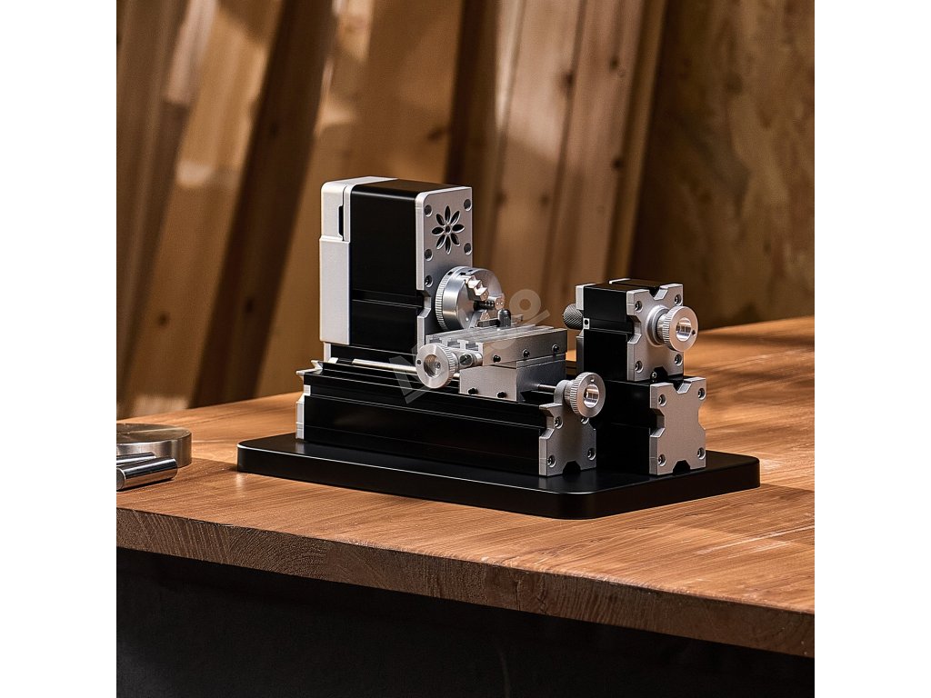 Tento mini soustruh na kov s maximálními otáčkami 20 000 ot/min, soustružením hliníkové tyče o průměru 0,1 mm a posuvem 0,02 mm umožňuje přesné obrábění a je ideální pro mnoho kreativních kutilských projektů.