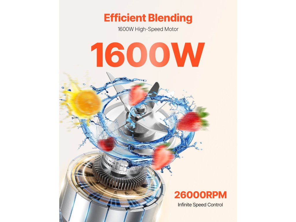 Mixer na smoothie, milkshake a džus 85 oz, s výkonem 1600W víceúčelový