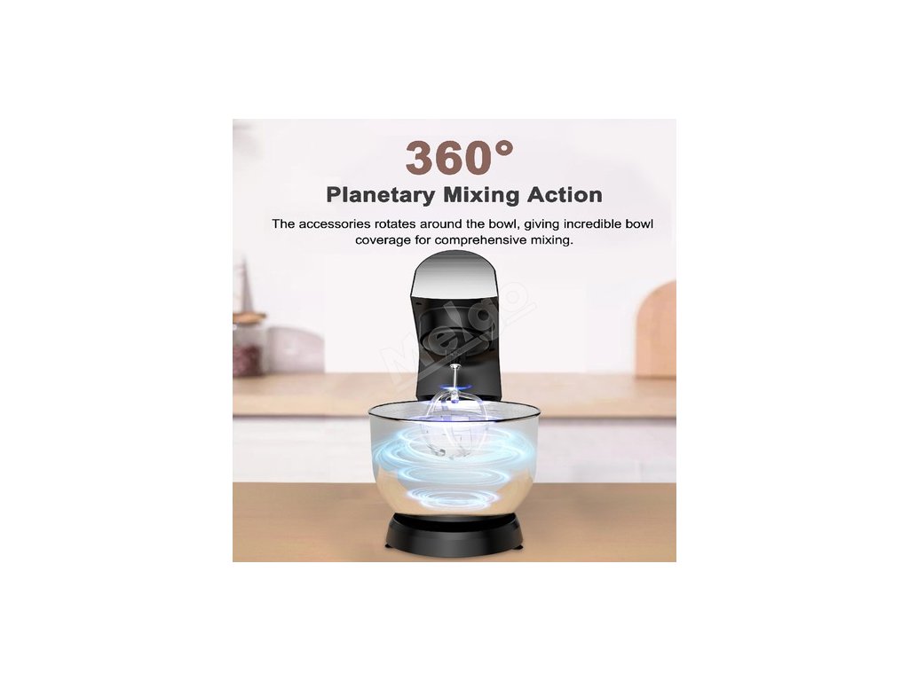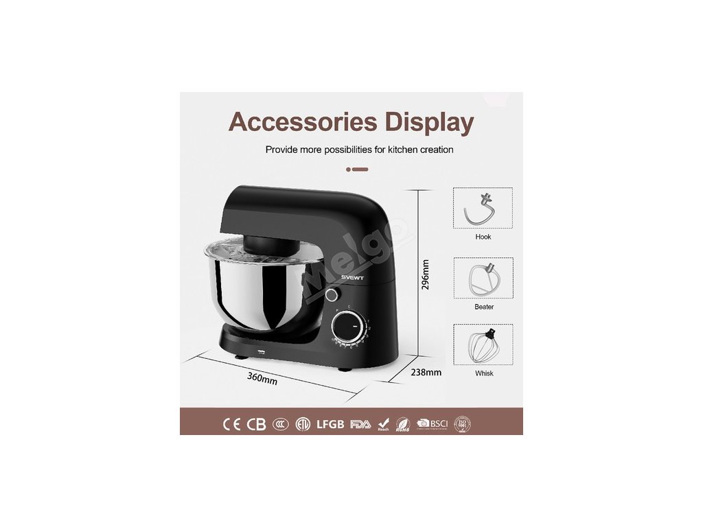 SVEWT je dodáván s míchací mísou z nerezové oceli SUS304, která nabízí dostatečnou kapacitu pro každodenní použití rodinou 2-6 osob, aby bylo možné snadno připravovat koláče, chléb, sušenky, bramborovou kaši, saláty atd. Její hák na těsto, drátěná metla a šlehač spolupracují s vícekontaktním planetárním mícháním, aby bylo míchání důkladné a rychlé. Nástavce lze mýt v myčce nádobí.