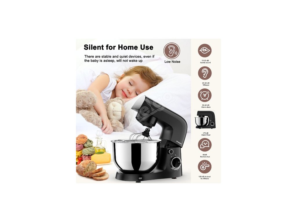 Mixér se špičkovým motorem z čisté mědi, robustním krytem z ABS a dvouvrstvou kovovou převodovkou odolnou proti hluku má dlouhou životnost a poskytuje silný výkon, ale nižší provozní hluk (maximálně <75 dB). Snadné mixování různých ingrediencí. Oblíbený stojanový mixér pro milovníky kuchyňského pečení.