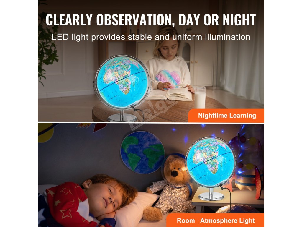 Náš krásně zpracovaný kovový stojan se otáčí o 720°, takže děti mohou snadno pozorovat Zemi z jakéhokoli úhlu. Díky stabilní základně, která minimalizuje kývání, se tento stojan ve srovnání s lehkými plastovými podstavci méně chvěje a poskytuje větší odolnost a stabilitu!