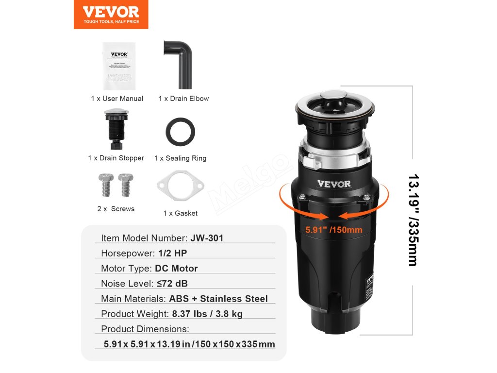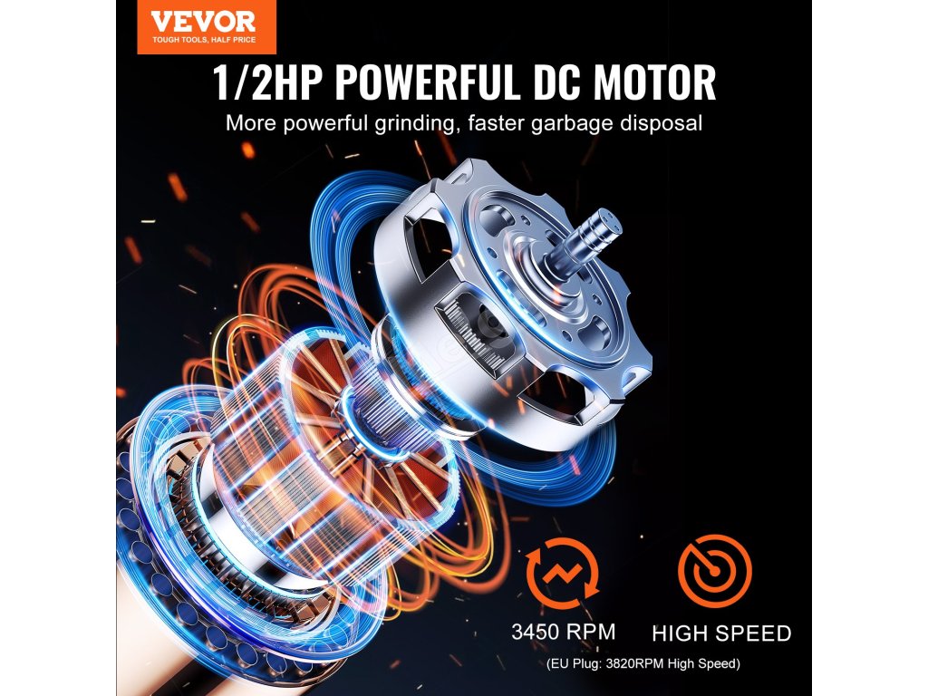 Rozlúčte sa s hromadením odpadu a nepríjemným zápachom! Vybavený výkonným jednosmerným motorom s výkonom 1/2 HP, ktorý pracuje pri 3820 otáčkach za minútu, si tento drvič potravinového odpadu s nepretržitým podávaním bez námahy poradí s odolnými zvyškami a udrží vašu kuchyňu čistú a bez zápachu. Užite si bezproblémové, rýchle a efektívne riešenie na likvidáciu odpadu.