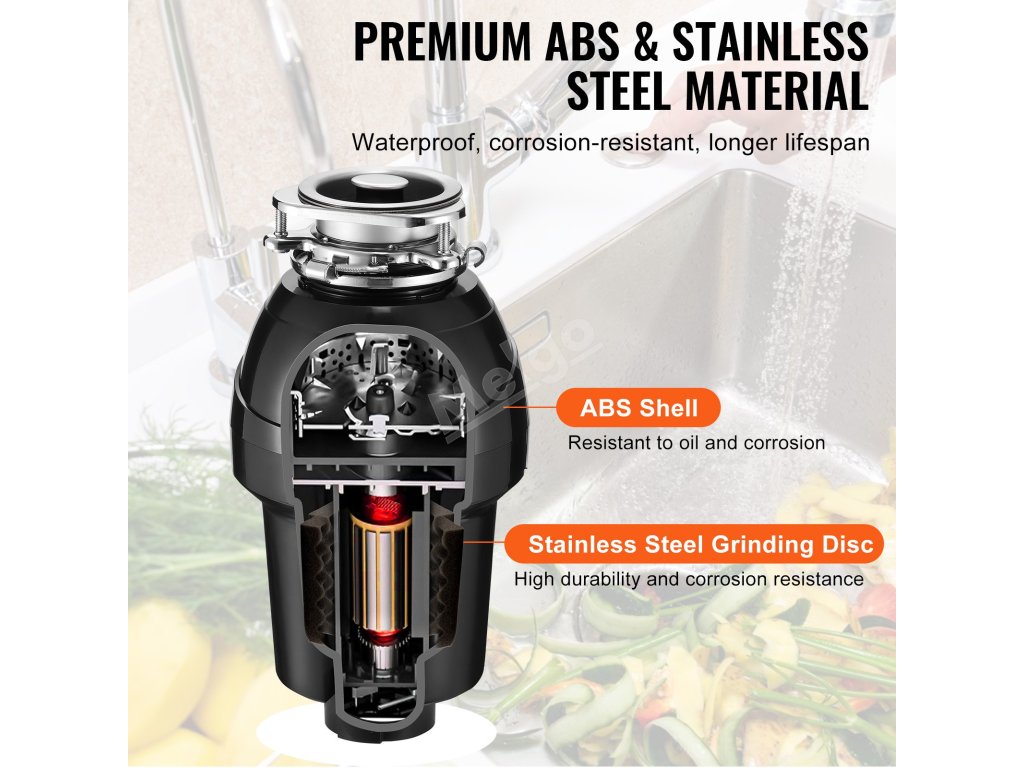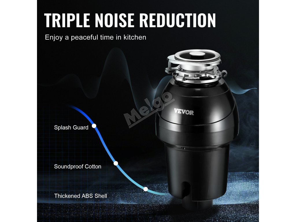 Tento drtič odpadků s vícevrstvou zvukovou izolací včetně ochran proti stříkající vodě, zvukotěsné bavlny a zesíleného pláště z ABS pracuje s hlučností ≤72 dB, takže si můžete užívat tiché kuchyně bez rušivého hluku.