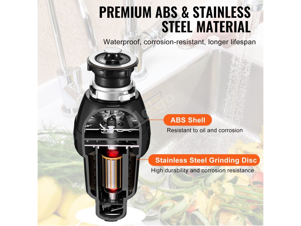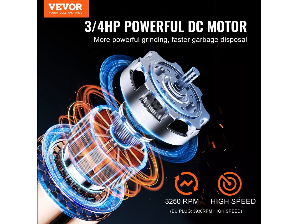 Rozlúčte sa s hromadením odpadu a nepríjemným zápachom! Vybavený výkonným jednosmerným motorom s výkonom 3/4 HP, ktorý pracuje pri 3930 otáčkach za minútu, si tento drvič potravinového odpadu s nepretržitým podávaním bez námahy poradí s odolnými zvyškami a udrží vašu kuchyňu čistú a bez zápachu. Užite si bezproblémové, rýchle a efektívne riešenie na likvidáciu odpadu.